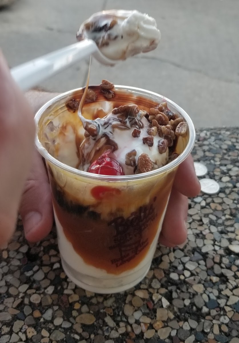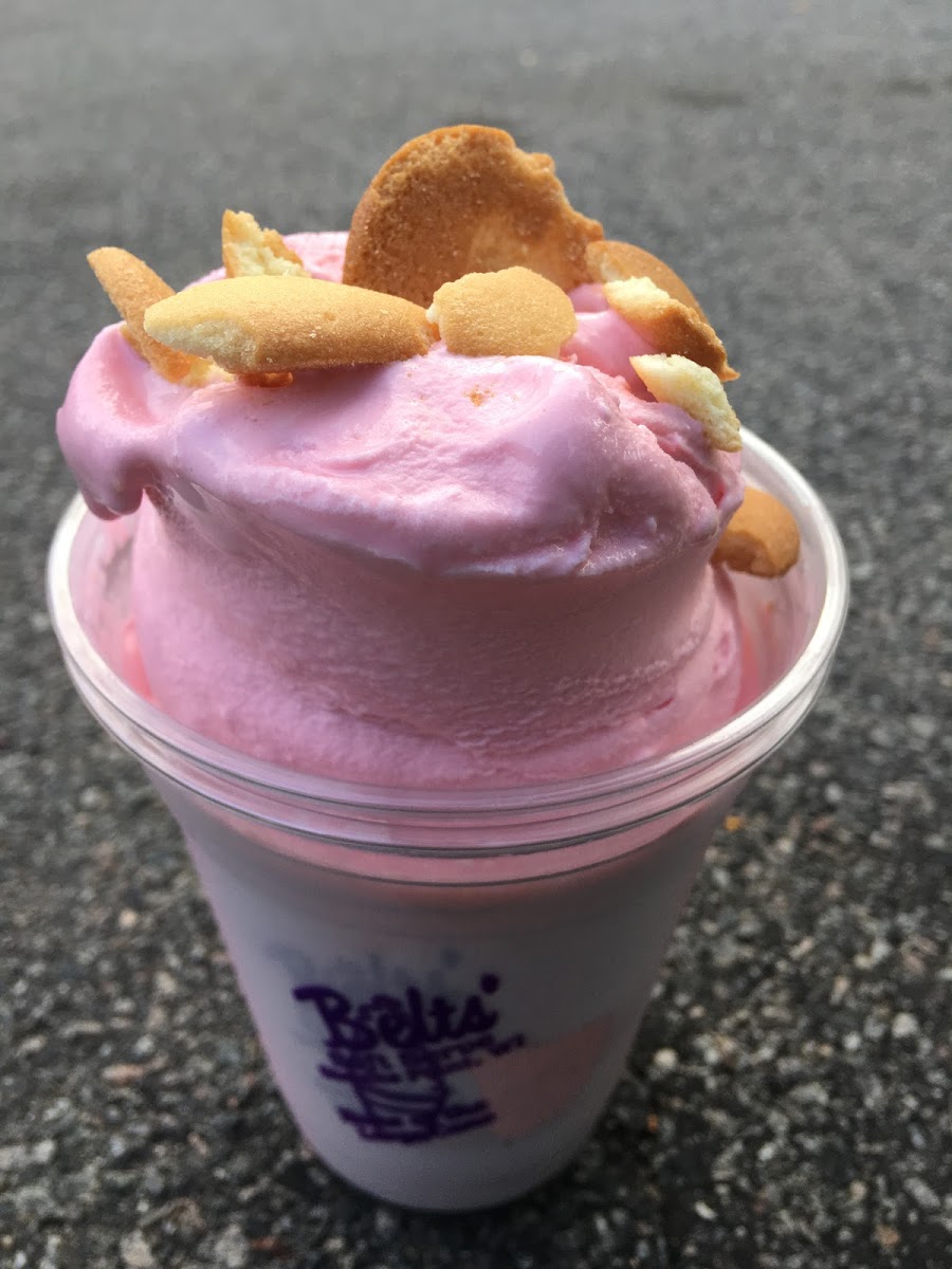 Really enjoy Belts ice cream cones. They are really big, so take that into account when ordering. I had a medium soft serve twist with chocolate and vanilla and it was perfect for a hot day. My grandchildren really enjoyed their cone dipped in sprinkles. I probably should have ordered the child's cone for my youngest grandson as there was no way he could finish the small cone and made quite a mess, which we had a lot of fun with. Prices are great as the total was less than $10. There are many options beyond cones, and they are all good.