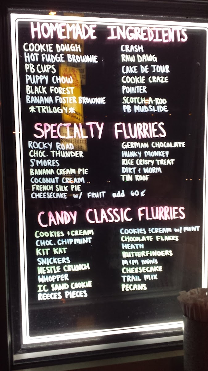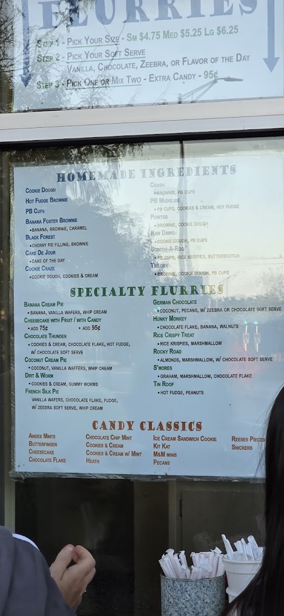 Items such as the Cookie Dough and Dirt and Worms Flurries provide a fun twist on traditional soft serve, while options like the Turtle Sundae and Banana Cream Pie Flurry bring a comforting sweetness that fits well with a laid-back, welcoming atmosphere. If you’re after something simple, a medium twist cone or a classic vanilla dish offer familiar enjoyment without fuss.