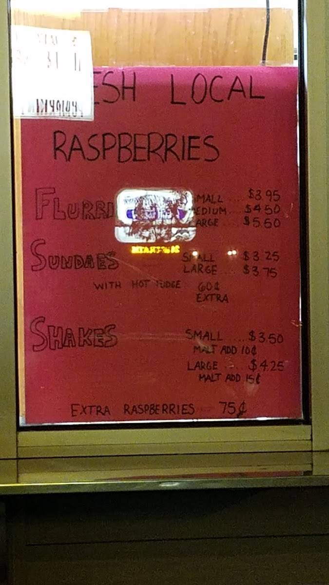 The selection also includes thoughtfully seasonal and local touches like Fresh Raspberries and Door County Cherry Ice Cream, inviting a taste of the region. Alongside these, the menu features larger portion sizes that make for a satisfying treat to share or savor during a casual stroll or a shaded spot outside the shop.